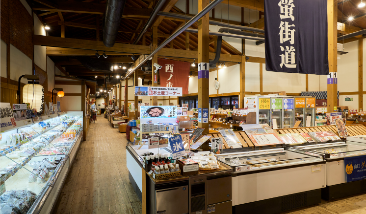 広々とした売り場には地元野菜や果物、お土産品や海産物など様々な商品が並びます。