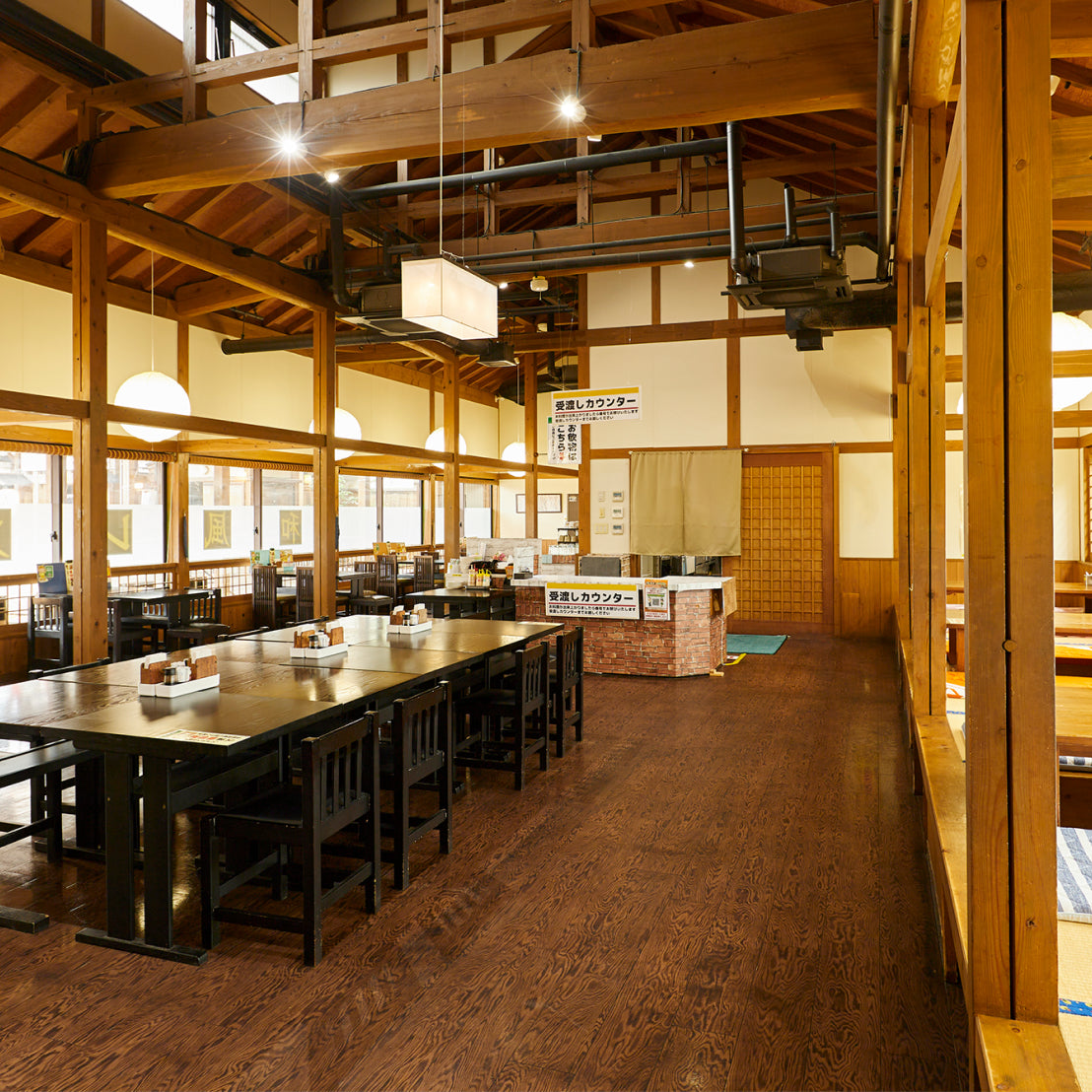 テーブル席約50、座敷席16。広々としたスペースでゆったりとお過ごしいただける和食レストラン。