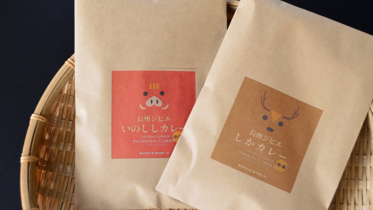 豊田町産の鹿肉・猪肉を使用したレトルトカレー。手軽にジビエを楽しめると大人気です。
