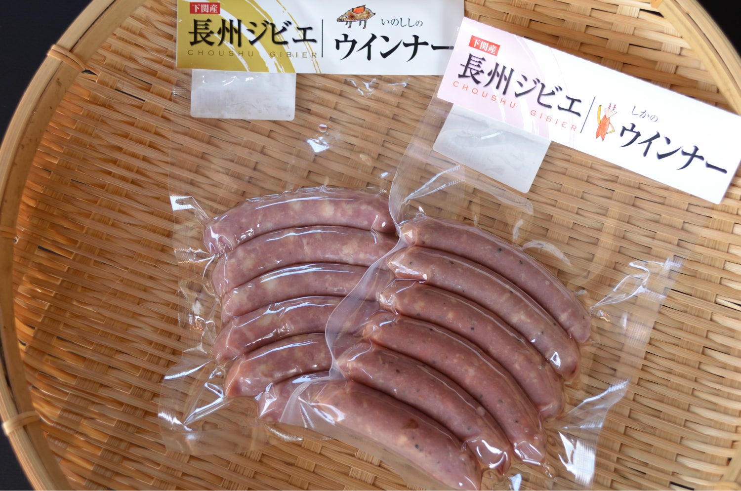 豊田町産の鹿肉・猪肉を使用したウインナー。おつまみやBBQ用としても人気です。