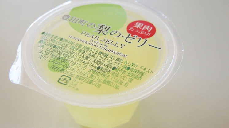二十世紀梨の果汁を使用したゼリー。梨の果肉が入っており梨の爽やかな甘さが広がります。