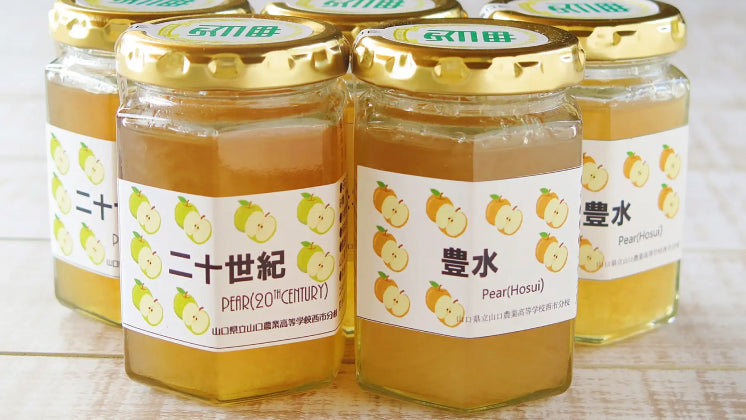 地元高校生が豊田町産の梨を使用し作る大人気のジャム。品種ごとの食べ比べもおすすめ。